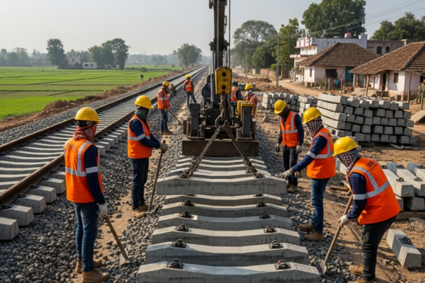 Railway infrastructure in Odisha increasingly relies on high-quality precast concrete components to upgrade track reliability and safety across the state. Pre-stressed concrete sleepers (PSC) — precast, reinforced concrete ties — are laid transversely beneath rails, ensuring correct gauge and alignment while transferring loads evenly onto ballast, thereby providing firm support and long-term structural stability.